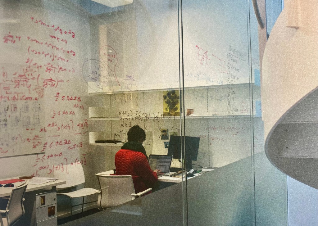 En cuanto a las oficinas, Ritchie hizo una concesión con Dayan, creando tres oficinas individuales para los estudiantes de posdoctorado, pero el resto de las oficinas fueron hechas para ser compartidas en grupos de dos a cuatro estudiantes, de manera tal que pudieran tener cierto grado de privacidad, pero sin que pudieran aislarse completamente de los demás. Las paredes fueron hechas en superficies en las que se puede escribir, así que funcionan como tableros, en donde cualquiera puede hacer anotaciones y compartirlas. Además, todas las oficinas tienen ventanas sobre la calle o un tragaluz central diseñado para maximizar la entrada de luz natural; ahorrando energía y estimulando el buen funcionamiento del ciclo circadiano de los usuarios.3
