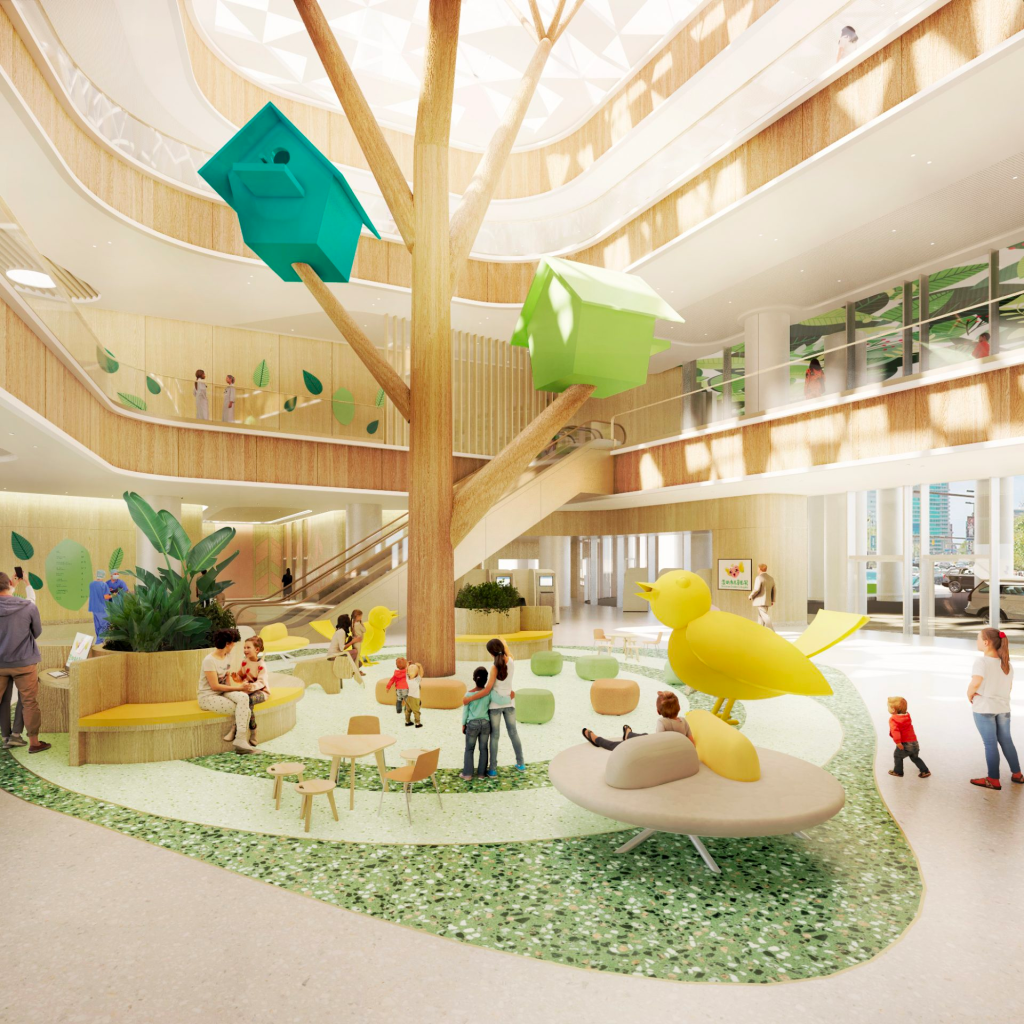 El diseño busca involucrar a los pacientes jóvenes a través de una serie de funciones, gráficos e instalaciones cuidadosamente diseñados para aliviar la ansiedad de los pacientes y facilitar la curación general.6