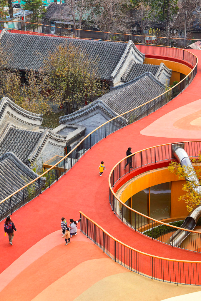 Este proyecto integra edificios del siglo XVIII con una area de juego en el techo de la nueva edificación.