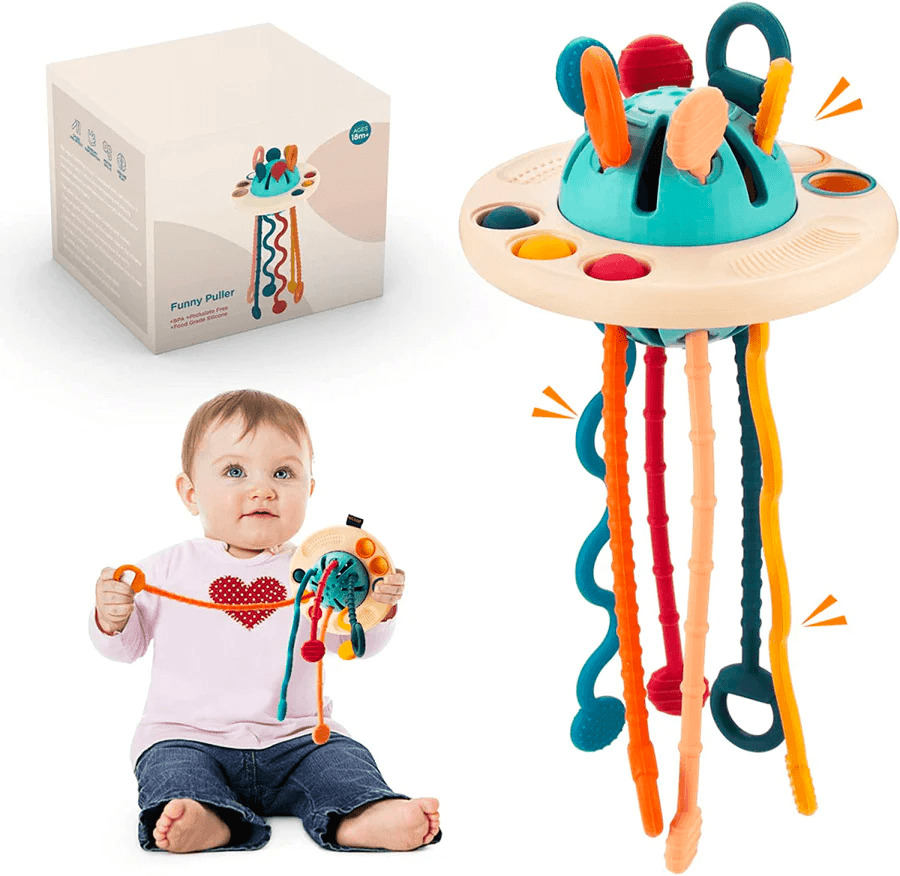 A la izquierda un juguete recomendado para niños de 0 a 1 año. A la derecha, un set de elementos de cocina, apropiado para niños entre 3 y 5 año de edad.