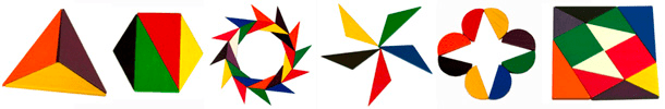 Este juguete para edades más avanzadas se compone de un cuadrado, un triángulo equilátero, un triángulo rectángulo isósceles, un triángulo rectángulo escaleno, un triángulo obtuso isósceles, un círculo y un semicírculo. Las piezas son modulares y ayudan a entender conceptos geométricos y matemáticos además de fomentar la creatividad.4