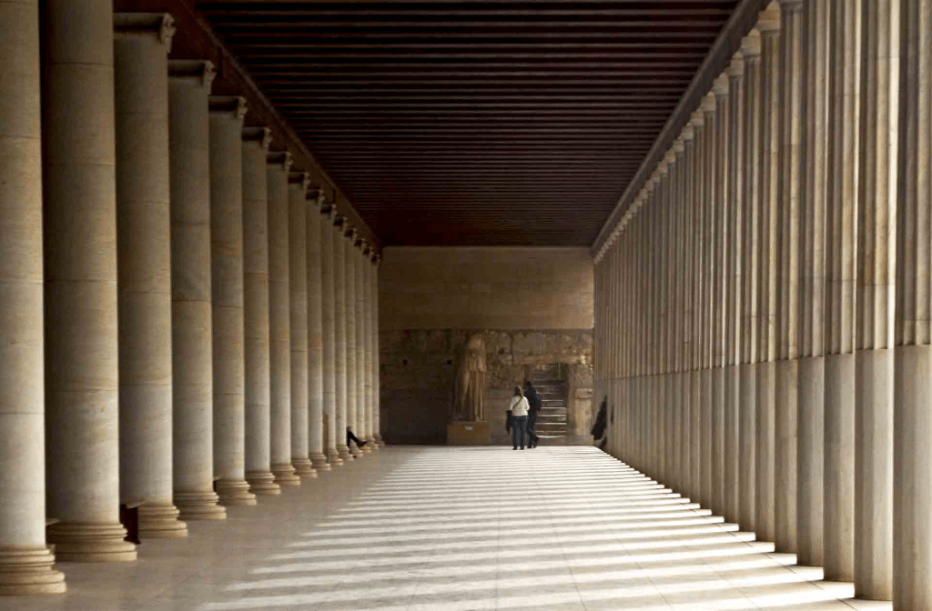 Desde la antigüedad las ciudades griegas giraban en torno a los espacios públicos, siendo el más importante el ágora. En este amplio recinto tenían lugar acontecimientos de toda índole: debates políticos y filosóficos, elecciones, celebraciones religiosas, actividades mercantiles, actuaciones teatrales, competiciones atléticas.