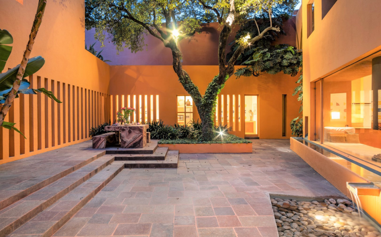 Con formas sencillas, juegos de luces y sombras, el uso del color y la integración de la naturaleza crea espacios inspiradores y evocativos.