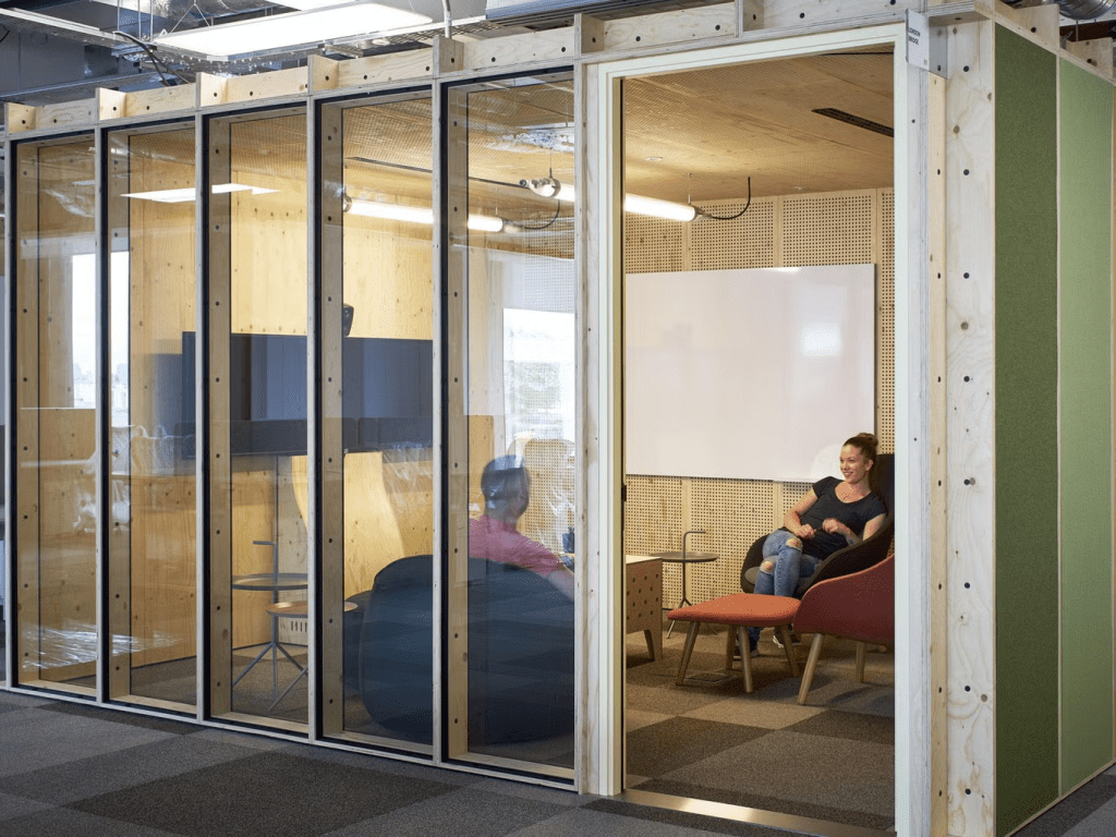 - Espacios tranquilos y para la concentración: También se deben proporcionar espacios tranquilos y privados donde los empleados puedan concentrarse y trabajar sin distracciones; espacios relajados y tranquilos que fomenten la concentración. Para esto se usan áreas un poco apartadas en donde la circulación sea mínima para crear unas cabinas que aíslen el ruido.